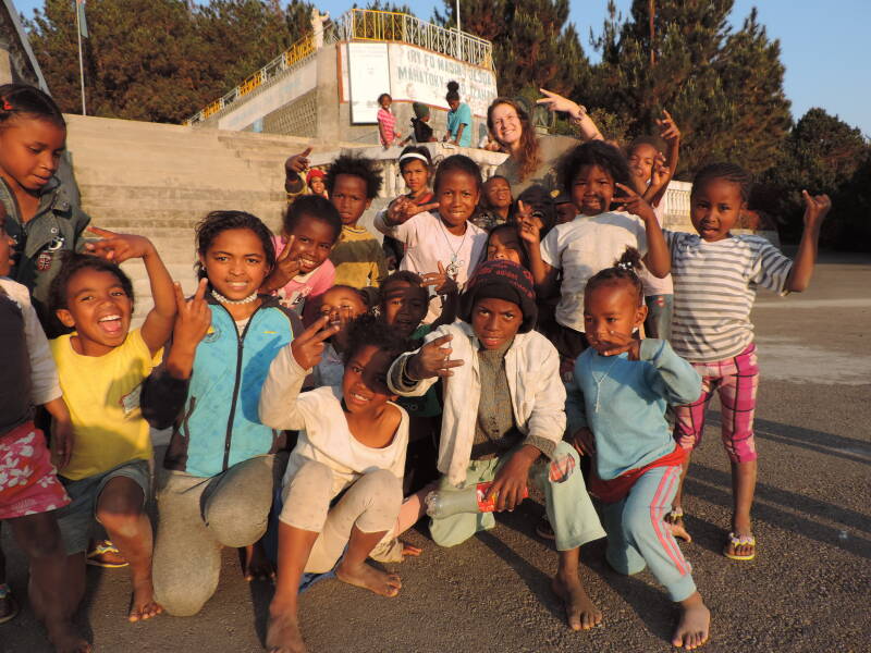 Von hier aus hat man auch einen super Überblick über die hier angesiedelten Hochschulen. Wer sich also bereits aufs Berufsleben vorbereitet und das Geld für eine Ausbildung hat, kommt hier her. Man hat auch einen exzellenten Ausblick auf die gesamte Hauptstadt Antananarivo. Leider auch auf den Steinbruch, der nebenan liegt. Hier sieht man sowohl Erwachsene als auch Kinder im Dreck sitzen, während sie mit einem Hammer größere Steinsbrocken in kleinere Steine zerteilen. Bitterer Anblick. Mitten im Steinbruch haben die Leute einen Altar aus denselben Steinen gebaut, um ihre Messe hier ab und zu mit besonders vielen Leuten feiern zu können. Der Glaube an Gott ist in diesem Land noch unglaublich stark und für viele Menschen ein Strohhalm, an den sie sich klammern und auf bessere Zeiten hoffen können.