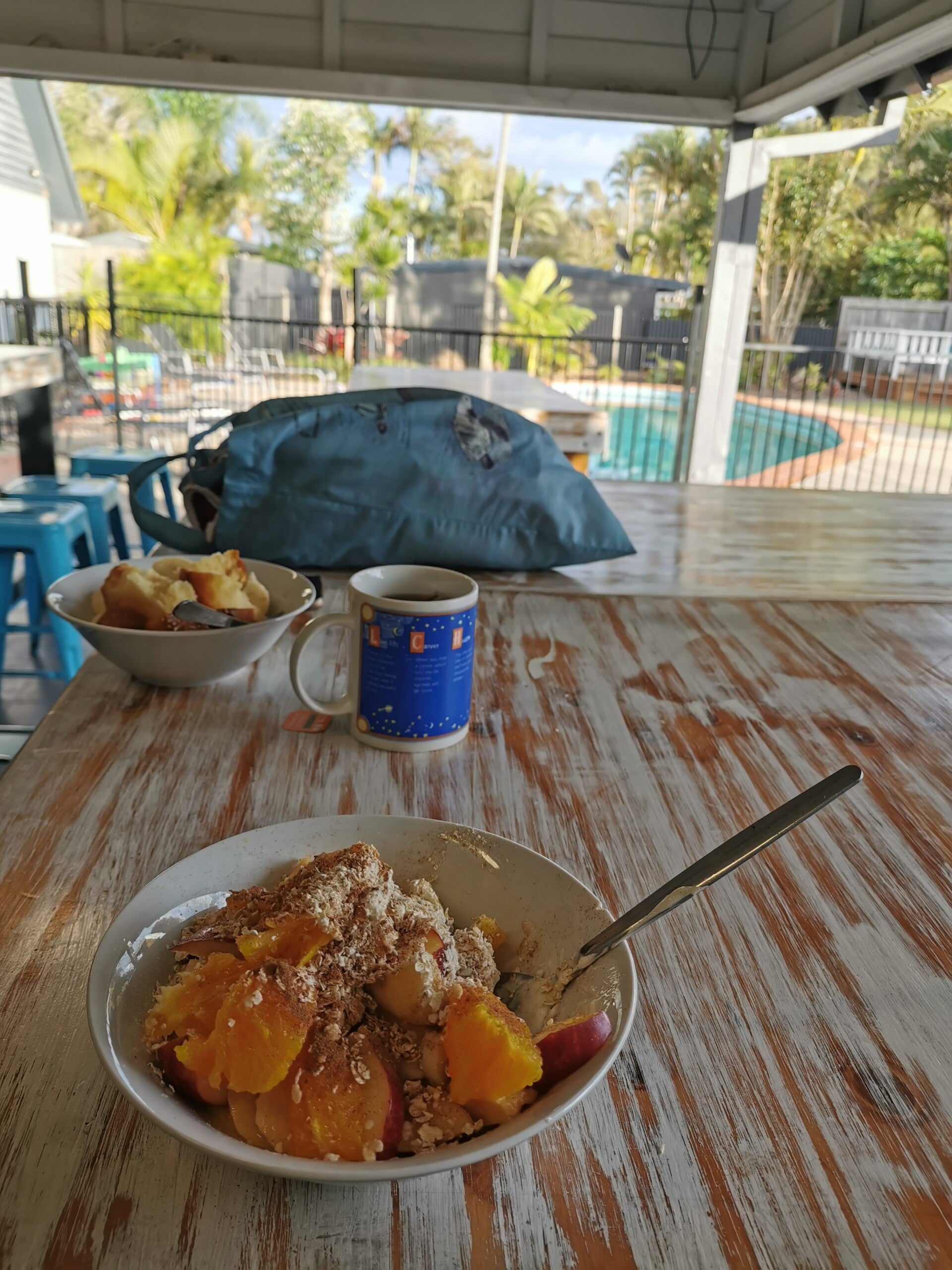 Dieser Mittwoch war wieder ein weiterer Weiterreisetag. Am Vormittag bekamen wir noch etwas Freizeit zur Verfügung gestellt, die wir gemeinsam in Frühstück und einen Shoppingtrip investierten (und jaaa, auch ich habe eingekauft, nämlich eine weitere lange Hose und ein langes Hemd, da ich ja auf dieses ar***kalte Wetter nicht eingestellt war😅) und den Nachmittag verbrachten wir im Bus. Zielort: Rainbow Beach. Hier würden wir nur eine Übergangsnacht bleiben, denn ein ganz besonderes Abenteuer stand uns bevor! Dafür deckten wir uns am Abend noch mit genügend Snacks im Supermarkt ein. Die ganze Gruppe ist übrigens im Tim Tam Fieber - die Schokolade landet bei so gut wie jedem regelmäßig im Einkaufskorb und wird gefühlt kiloweise gefuttert. 🙈