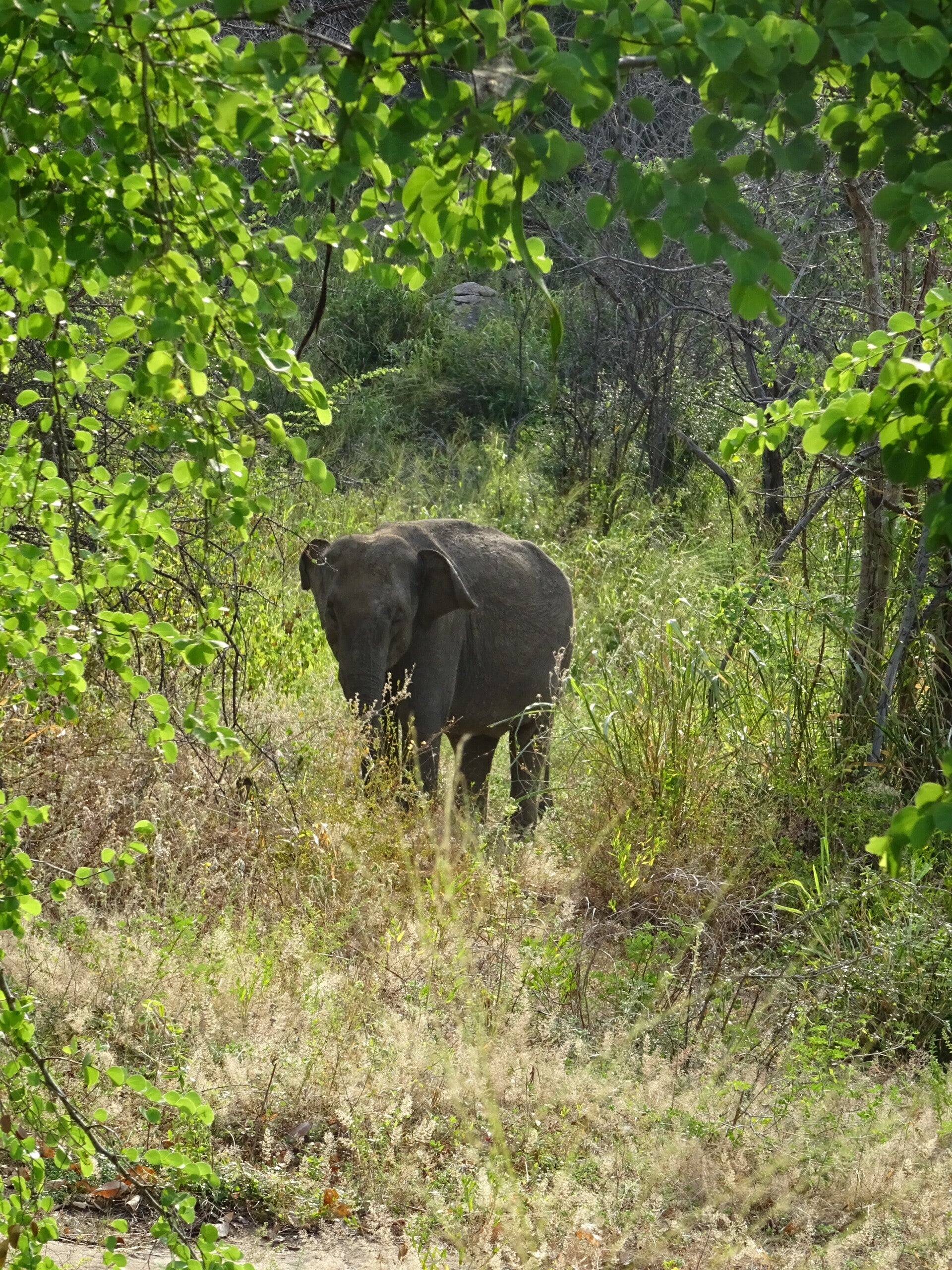 Nachdem ich nun etwas vermissten Schlaf aufgeholt hatte (mit 3 Stunden war die letzte Nacht relativ kurz) war ich bereit für die Safari in den naheliegenden Nationalpark! Wir nahmen den Jeep von seiner Schwester, bezahlten beim Eingang den Eintritt und fuhren dann direkt selbst durch den ganzen Park. Richtig cool: Beim Jeep konnte man hinten die Abdeckung öffnen und so stehend die Fahrt genießen! Nach ein paar Minuten auf der Ruckelpiste konnten wir sie auch schon sehen: Die ersten Elefanten! Es war eine Mutter mit ihrem Baby, deswegen ließen wir extra Sicherheitsabstand - Elefantenkühe neigen dazu schnell mal anzugreifen, wenn sie sich oder ihr Junges bedroht fühlen. Ich fragte Anushka, ob ihm das schon mal passiert sei und ja: Einmal hat er eine Elefantenkuh übersehen und diese rammte dann den Jeep von der Seite. Hoppla! Wir sahen noch mehrere Tiere auf unserer Fahrt und es war wunderbar die sensiblen Dickhäuter zu beobachten! Der auf Sri Lanka vorkommende Asiatische Elefant wird übrigens auch Ceylon-Elefant genannt, davon gibt es noch etwa 7500 wildlebende Exemplare.
