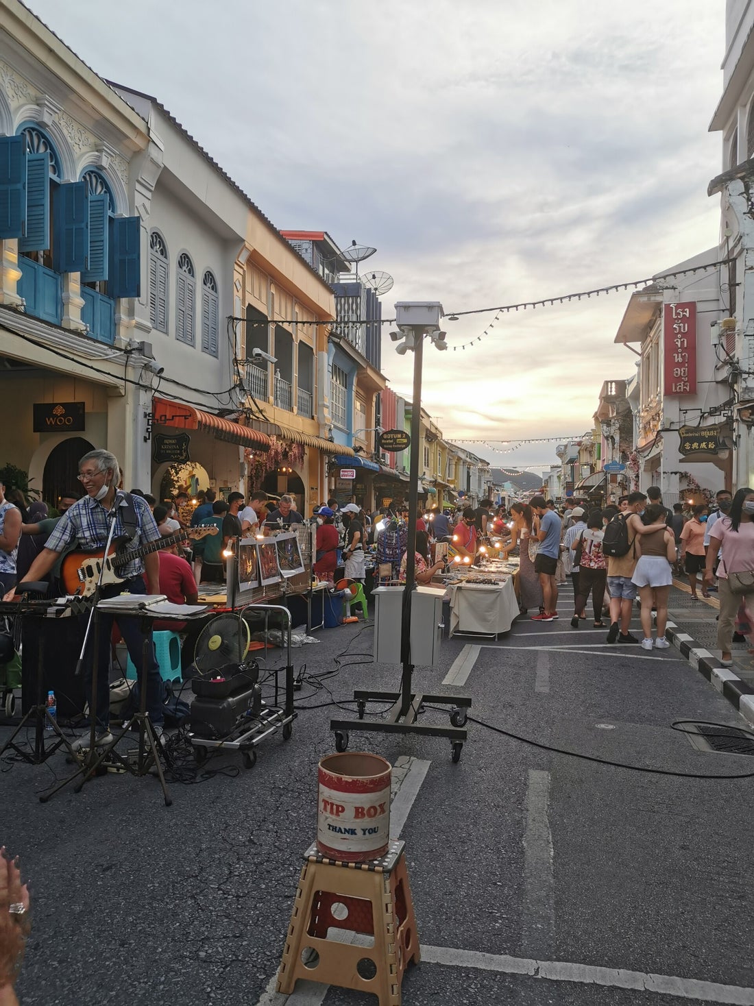 Sonntag ist Markttag, jedenfalls hier in Phuket. Als ich abends nochmal in die Altstadt spazierte hatte ich ja mit viel gerechnet, aber nicht mit dem. Die gesamte Innenstadt mit mehreren Straßen wurde komplett abgesperrt und nur an einer Stelle durch Polizisten immer wieder für Fahrzeuge geöffnet. Wow, ich war in einem Riesenkirtag gelandet!