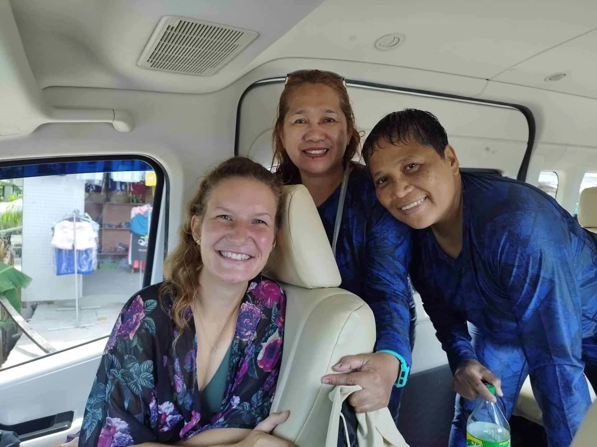 Kurze Zeit später beschloss ich, dass es auch für mich Zeit wurde, um den Rückweg anzutreten. Das wirklich steile Stück (ich klammerte mich richtig an den Fahrer, aus Angst beim nächsten Gasschub nach hinten zu fallen😅) ließ ich mich bequem nach oben chauffieren. "30 Pesos", meinte der Fahrer dann zu mir und während ich in meinem Geldtascherl kramte, tippte ein Typ aus einem Van heraus dem Mopedlenker auf die Schulter: "Hey, her ride was for free!" Es war Raymund, der zufällig gerade seinen Van ausparkte und tatsächlich nickte der Mopedlenker nur und kehrte um. "Oh dankeschön, das ist ja wirklich sehr nett", meinte ich zu ihm und ging grinsend ein paar Meter weiter. Raymund hatte seinen Van inzwischen ausgeparkt, sah mich dahinspazieren und fragte doch wirklich, ob ich das Stück nach unten mitfahren möchte, er fahre so und so. Hmm eigentlich wollte ich ja gehen, doch einen kurzen Blick zum inzwischen wieder gefährlich strahlend blauen Himmel rauf nickte ich dankbar und stieg vorne dazu ein. Im Van saßen hinten nur die beiden Damen von vorhin drinnen und die Rückfahrt war einfach toll! Wir kamen sofort ins Gespräch, stellten fest, dass sie zur gleichen Zeit auf Palawan waren und auch zur gleichen Zeit nach Bohol weiterreisen möchten wie ich und hatten eine ordentliche Hetz. So sympathisch, nur am kudern und einfach unglaublich herzig die Beiden! "Tell Barbara your story!", meinte Reymund zu ihnen und flüsterte mir mit einem Lächeln im Gesicht zu, dass er noch immer Gänsehaut hätte. Die Story kurz und knapp: Die beiden Damen gingen als Teenager zusammen in die Schule und waren gute Freundinnen, doch nach dem Abschluss brach der Kontakt damals komplett ab und ganze 40 Jahre hatten sie nichts voneinander gehört. Weil eine von ihnen seit längerer Zeit ein so tristes Leben führte, beschloss sie ihre alte Freundin ausfindig zu machen und nach einem Treffen zu fragen. Das war erst dieses Jahr und zack beschlossen die beiden ihr ganzes Geld in die Hand zu nehmen und gemeinsam erstmals auf Reise zu gehen! Sie verstanden sich von Beginn an wieder prächtig und hatten sich viel von den letzten 40 Jahren zu erzählen. Da saßen sie nun hinter mir, eine legte ihren Arm um die Schulter der anderen, während sie mir von ihrer Story erzählten und sie gackerten dazwischen immer wieder wie die Hühner. Herrlich, solche Menschen kennenlernen zu dürfen! 💛