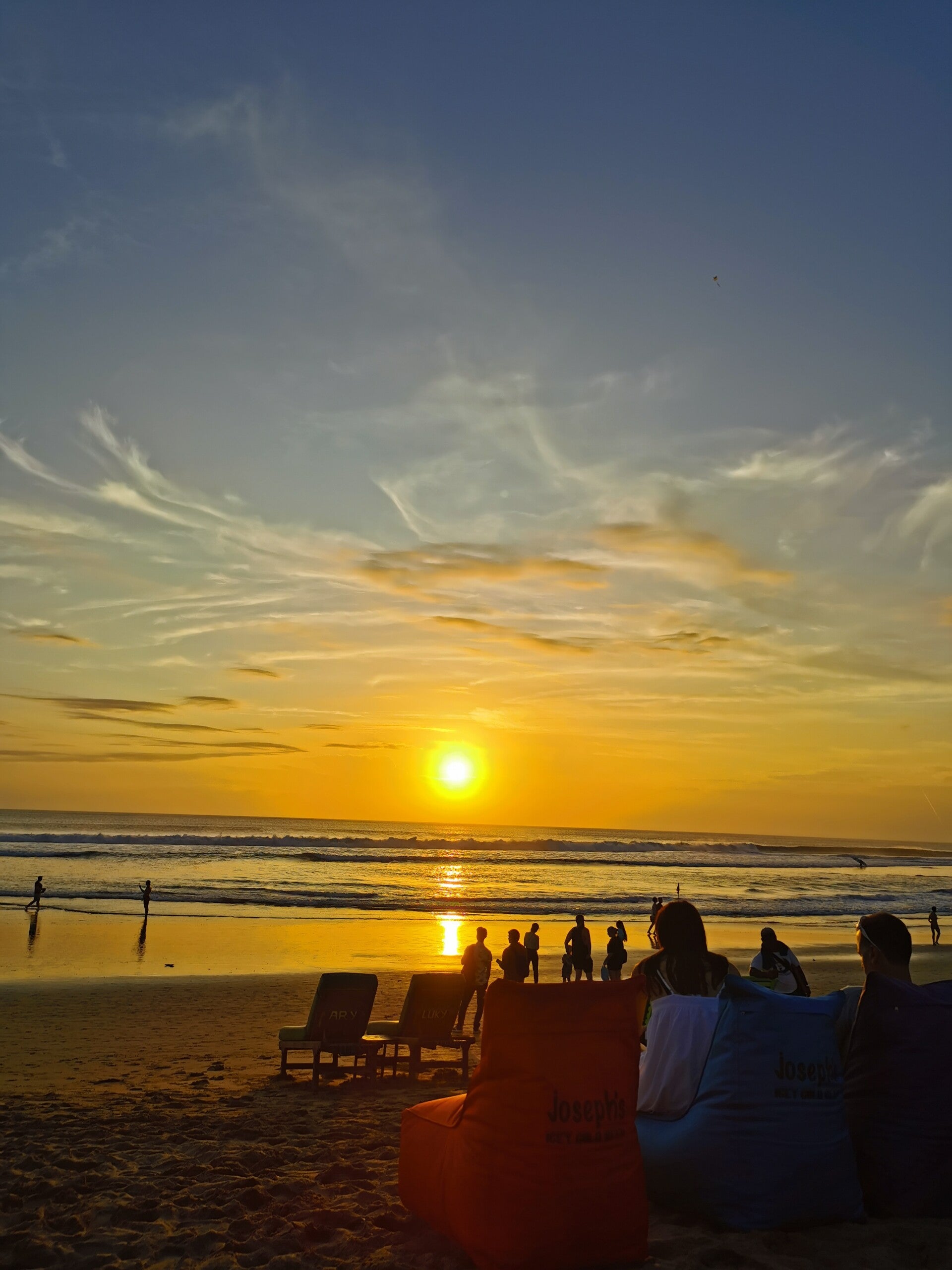 Der nächste Tag wurde ganz entspannt. Am Vormittag gönnte ich mir eine einstündige Massage um knapp 10 Euro, da ich mich inzwischen vor lauter Rücken-, und Genickschmerzen kaum mehr rühren konnte, und am Nachmittag spazierte ich zu Fuß zum gut 2km entfernten Kuta Strand, um mir den Sonnenuntergang anzusehen. Mit Woaz in der Hand und einer kühlen Kokosnuss vor der Nase saß ich im Sitzsack und beobachtete entspannt, wie die Sonne den Himmel orange färbte. So lässt sich's leben, ich sag's euch.